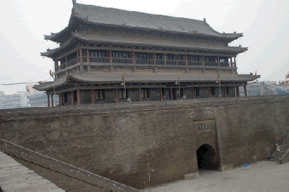 Welcome ceremony at City Wall The City Wall of Xian built in the third year of Hongwu Reign of the Ming Dynasty forms a boundary 14km long. On each side is a gateway, and over each stand three towers. At each of the four corners is a watch tower, and the top of the wall is punctuated with defensive towers. The wall is 12 metres high and 18 metres wide at its base, so wide that functions and small fairs are held on it and it makes a splendid scenic stroll.