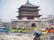 Guests move on to The Bell Tower. This is a four-square structure in the centre of Xian that you enter through an underpass on the north side and then ascend to a gallery which goes all around. A bell tower was first constructed in the late 14th century, but was rebuilt at the present location in 1739 during the Qing Dynasty. A large iron bell in the tower used to mark the time each day and the opening and closing of the Wall gates. |