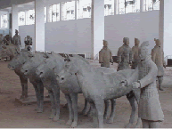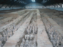 In 1974 peasants digging a well uncovered the major archaeological discovery of the 20th century: an underground vault of earth and timber that eventually yielded thousands of life-size terracotta soldiers and their horses in battle formation. The 6,000 terracotta figures of warriors and horses face east in a rectangular battle array. Each figure differs in facial features and expression. The horsemen are shown wearing tight-sleeved outer robes, short coats of chain mail and windproof caps. The archers have bodies and limbs positioned in strict accordance with an ancient book on the art of war. Nothing you can see in photography of this site does justice to the reality, especially in the details of the figures and the expressions on the faces of the warriors.