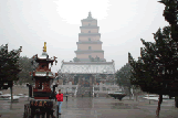 After lunch the party will visit the Big Goose Pagoda, located in Daci'en Temple, south of Xian, and built in 652AD. It is 64 meters high with seven stories. It is one of the landmarks of Xian. It was built to house the Buddhist scriptures brought back from India by travelling monk Xuan Zang, who then set about translating them into 1335 Chinese volumes. The impressive, fortress-like wood-and-brick building rises 64 metres. You can climb to the top for a view of the countryside and the city. |