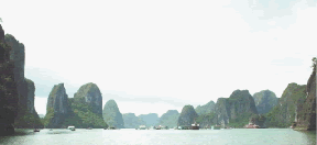 This will be a full day visit, travelling 170 kilometres east of Hanoi to the coast of the Gulf of Tonkin. Halong Bay means 'Descending Dragon' Bay. In a war with the Chinese, it is said, the gods sent a family of dragons to assist the Vietnamese and this is where they landed, spitting jewels which turned into islands. In fact Halong Bay is a body of water 1,500sq kms in size with a dense cluster of monolithic limestone outcrops, tipped with thick jungle vegetation rising spectacularly from the ocean. The party will cruise among them. |